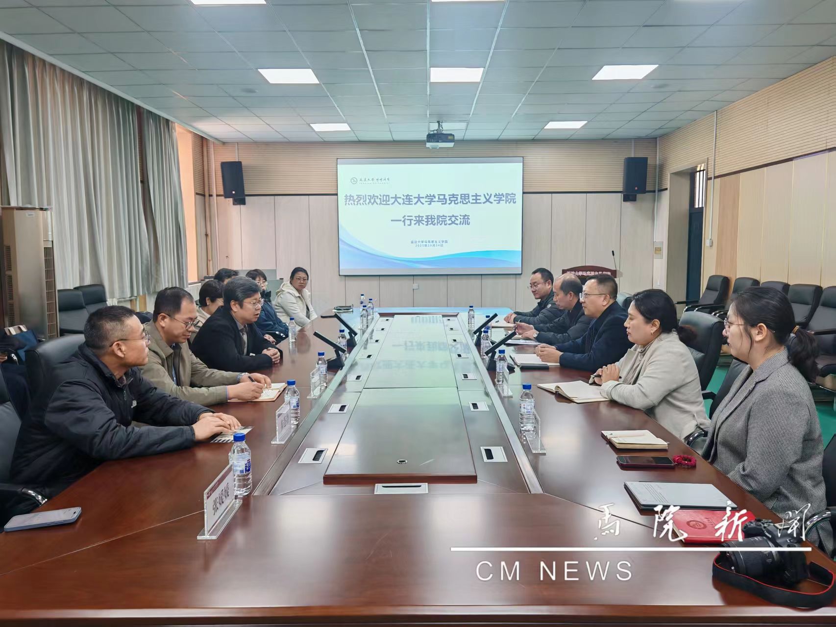 10月24日上午,大连大学马克思主义学院宋俊成院长一行12人到访我院,双方在师范楼102会议室举行交流座谈会。我院党委书记王洪国、院长赵刚、副书记千莹花、思想政治教育专业党支部书记梅涛、毛中特教研室主任李兆曦等参会,会议由赵刚主持。