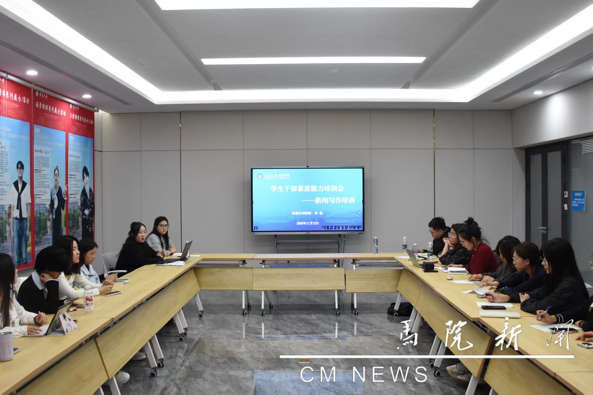 为提升学生干部政治素养与新闻宣传履职能力,筑牢校园宣传思想阵地,11月13日,马克思主义学院在“一站式”学生社区服务大厅党团活动室举办学生干部素质能力培训——新闻写作专题培训会。培训会由学院思想道德与法治教研室教师何鑫主讲、团委副书记于航主持,学院融媒体宣传工作爱好者及相关学生干部30余人参加会议。