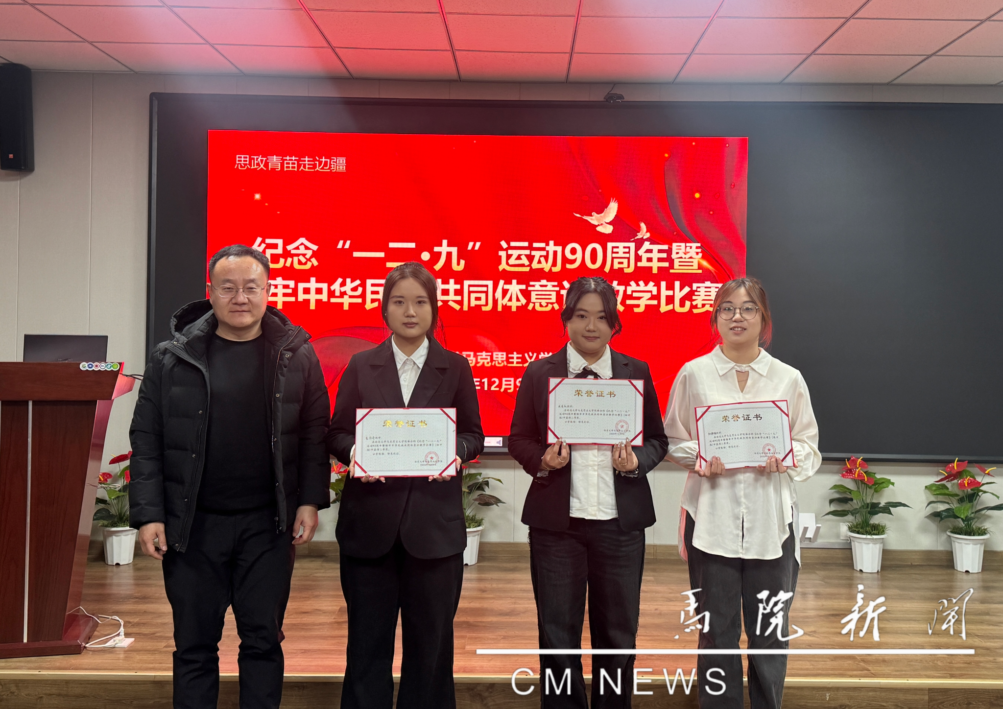 12月9日,马克思主义学院举办纪念“一二·九”运动90周年暨铸牢中华民族共同体意识教学比赛。本次比赛设初中组与高中组两个组别,共有10名“思政青苗走边疆”宣讲团学生成员经过选拔进入决赛,分别在继续教育学院一楼报告厅和师范楼227会议室两个赛场进行了精彩展示。活动特别邀请延边第二中学教导处副主任夏佳权、延边州教育学院初中道德与法治教研员刘思宁两位老师与马克思主义学院梅涛、高明文、蔡银珠、赵宝星四位老师共同组成评委团,为参赛选手提供专业指导与评审。